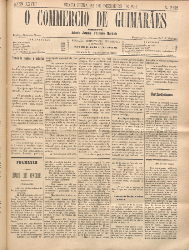 Comércio de Guimarães, nº 2612, de 22/12/1911