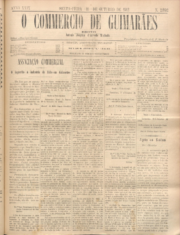 Comércio de Guimarães, nº 2691, de 11/10/1912