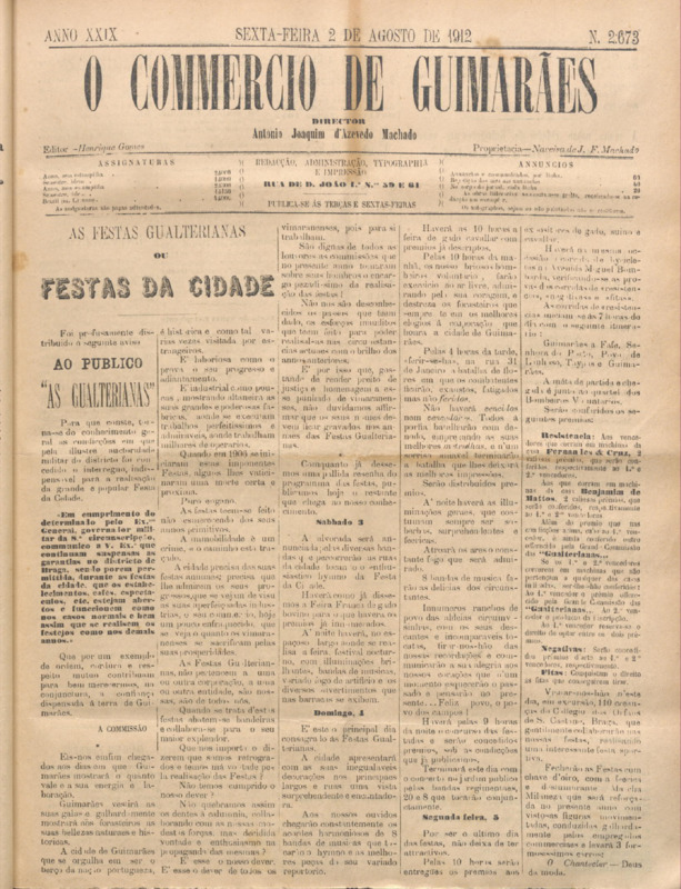 Comércio de Guimarães, nº 2672, de 02/08/1912