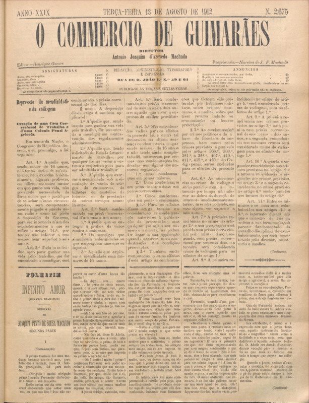 Comércio de Guimarães, nº 2674, de 13/08/1912