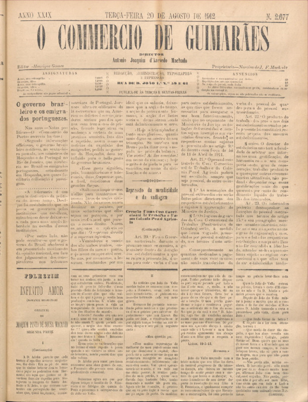 Comércio de Guimarães, nº 2676, de 20/08/1912