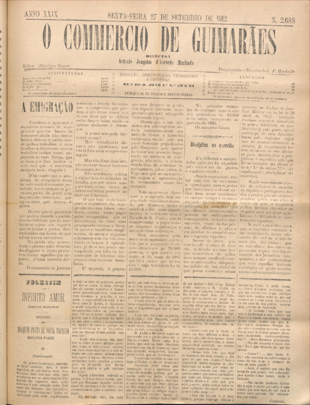Comércio de Guimarães, nº 2687, de 27/09/1912