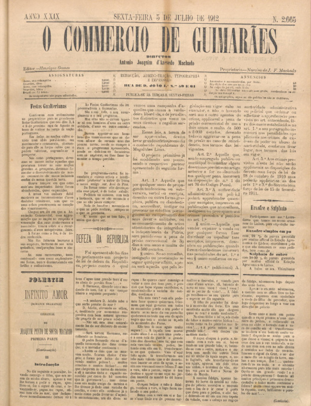 Comércio de Guimarães, nº 2666, de 12/07/1912