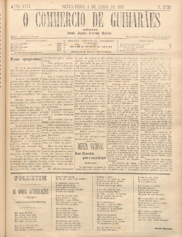 Comércio de Guimarães, nº 2737, de 04/04/1913