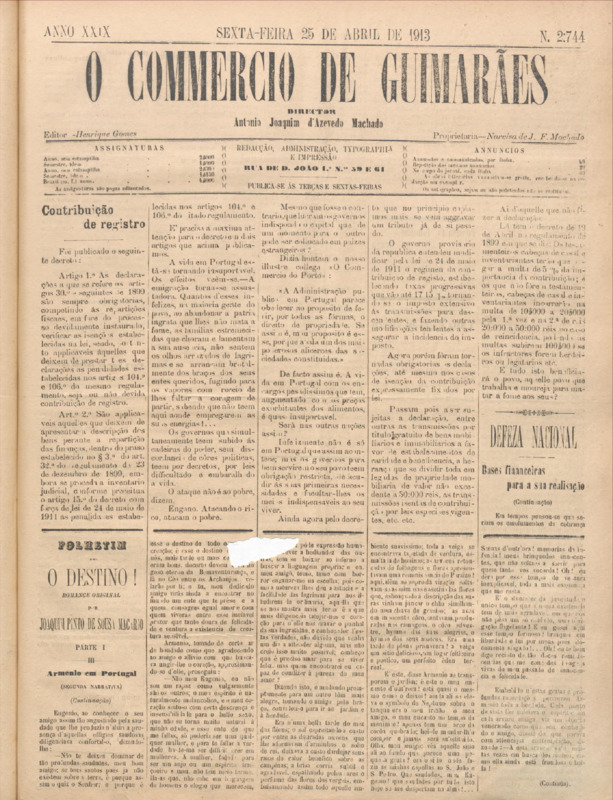 Comércio de Guimarães, nº 2744, de 29/04/1913