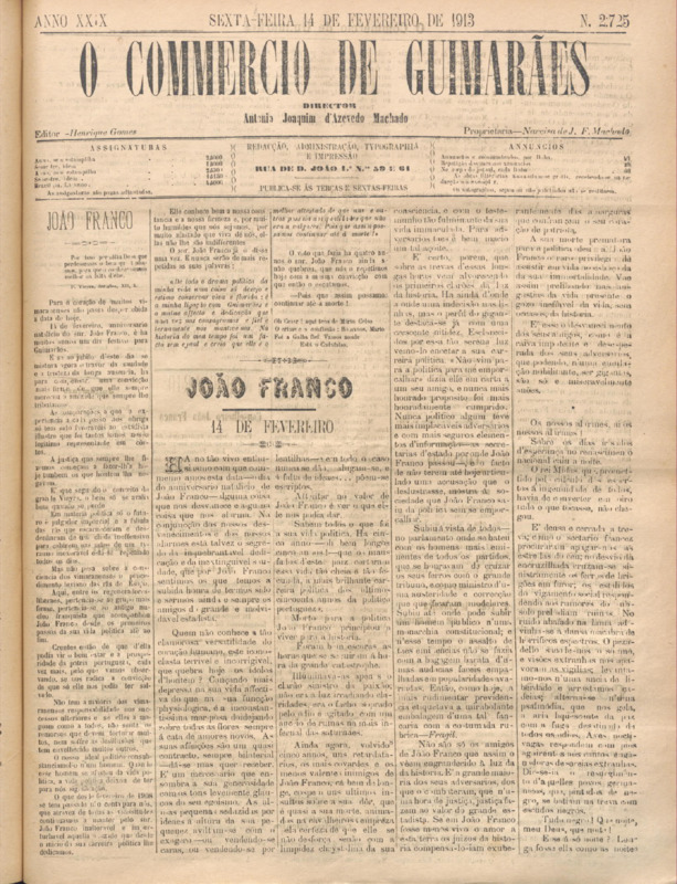 Comércio de Guimarães, nº 2724, de 14/02/1913