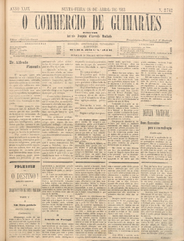 Comércio de Guimarães, nº 2738, de 08/04/1913
