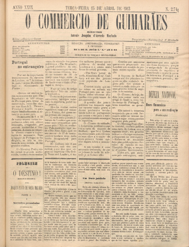 Comércio de Guimarães, nº 2740, de 15/04/1913