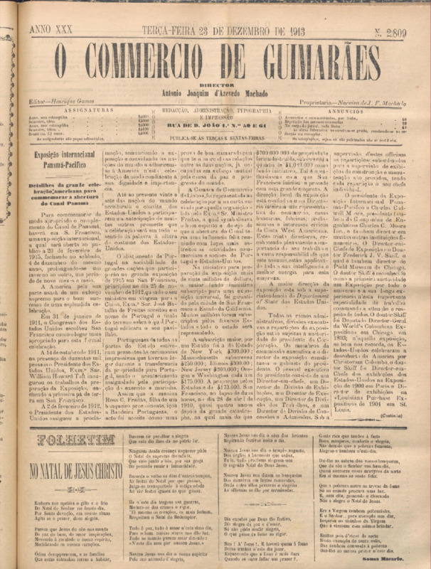 Comércio de Guimarães, nº 2809, de 30/12/1913