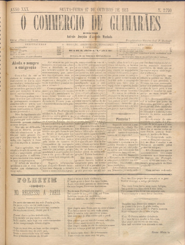 Comércio de Guimarães, nº 2785, de 03/10/1913