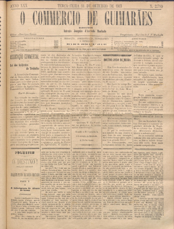 Comércio de Guimarães, nº 2789, de 14/10/1913