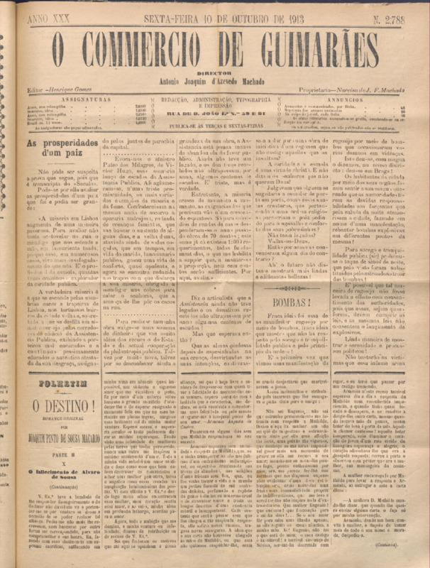 Comércio de Guimarães, nº 2788, de 10/10/1913