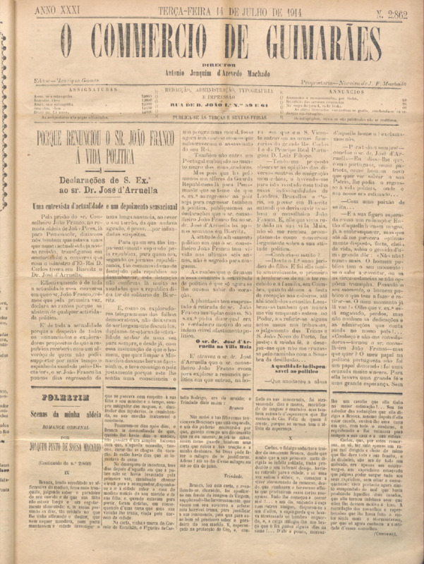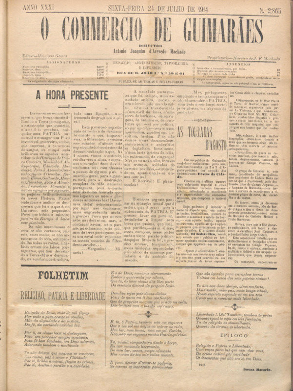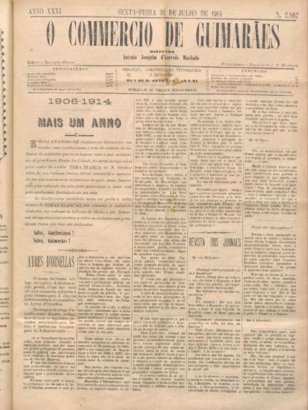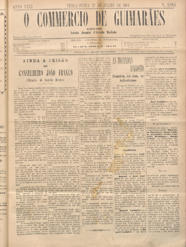 Comércio de Guimarães, nº 2866, de 31/07/1914