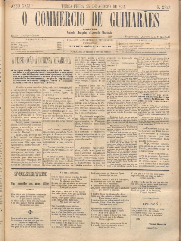Comércio de Guimarães, nº 2873, de 28/08/1914