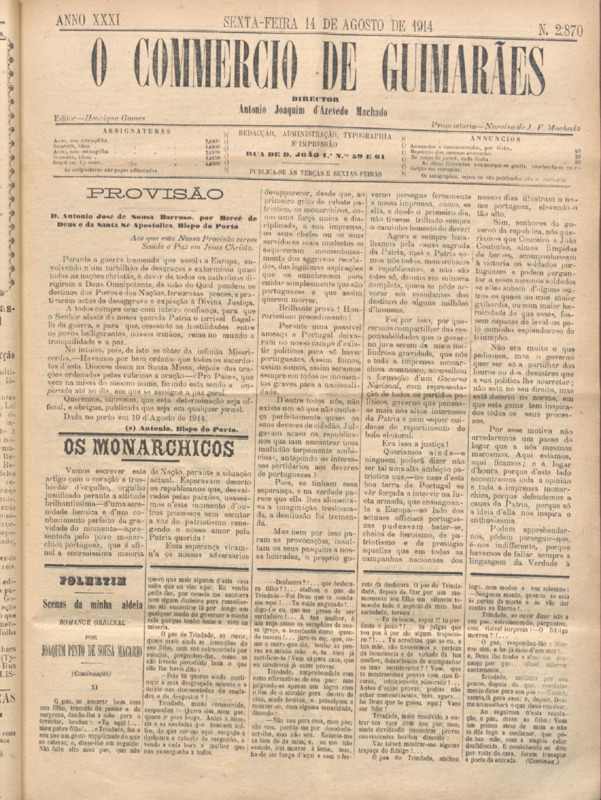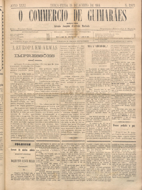Comércio de Guimarães, nº 2869, de 14/08/1914