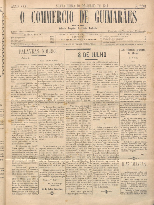 Comércio de Guimarães, nº 2860, de 10/07/1914