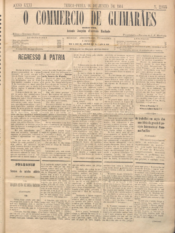 Comércio de Guimarães, nº 2854, de 16/06/1914