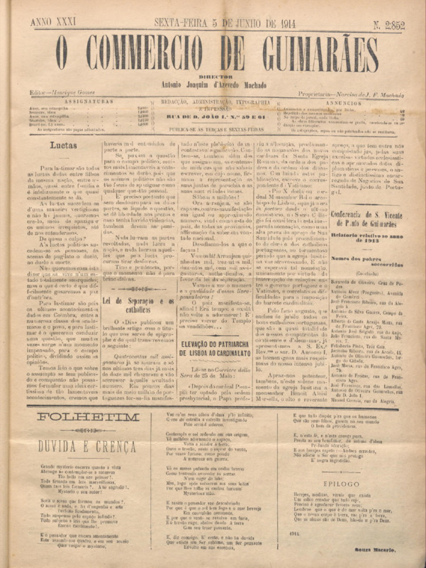Comércio de Guimarães, nº 2851, de 05/06/1914