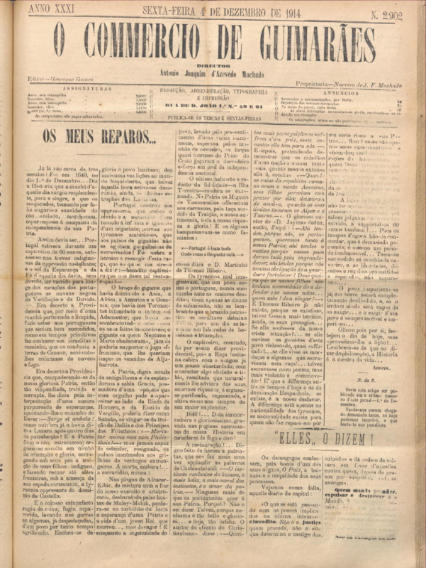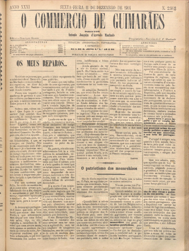 Comércio de Guimarães, nº 2902, de 11/12/1914