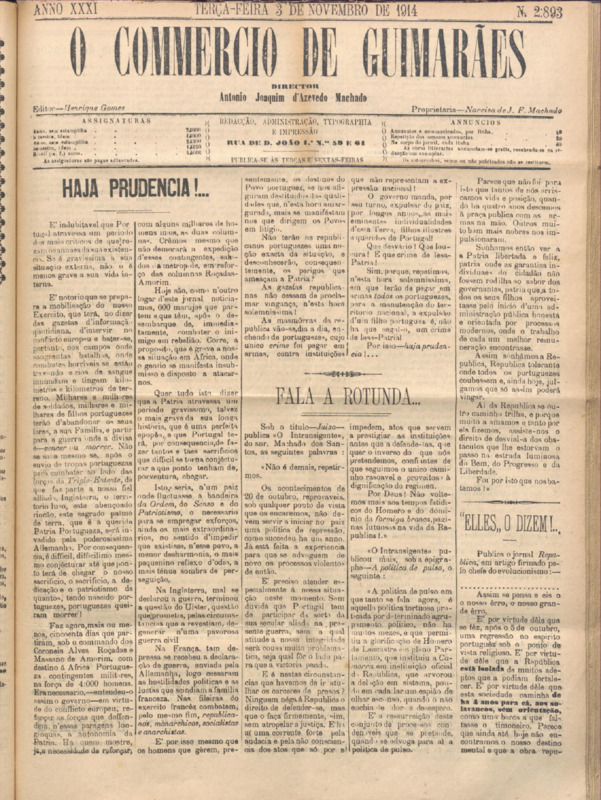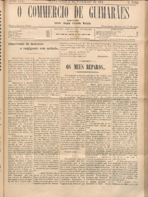 Comércio de Guimarães, nº 2892, de 03/11/1914