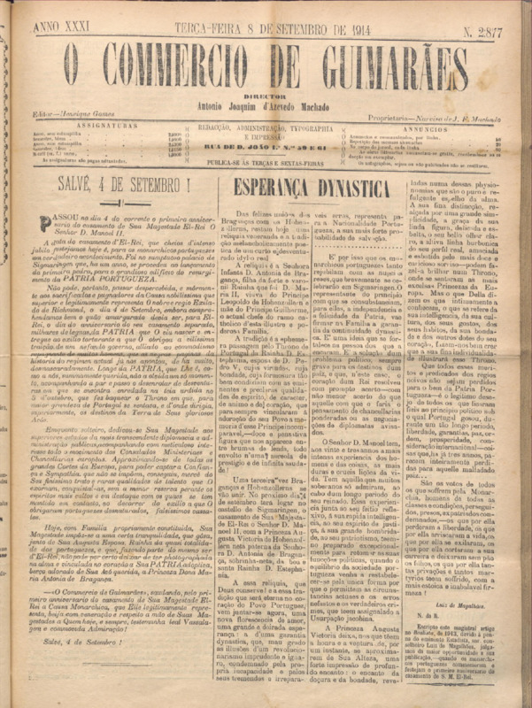 Comércio de Guimarães, nº 2877, de 11/09/1914