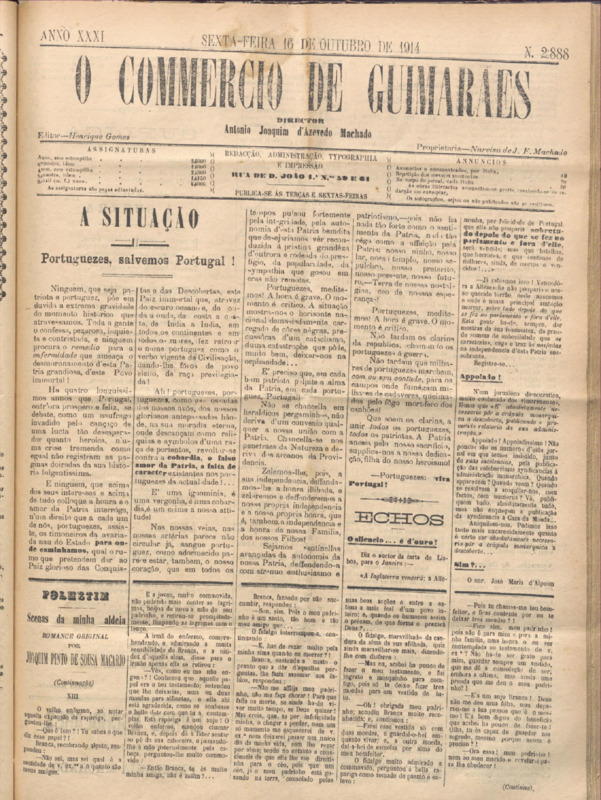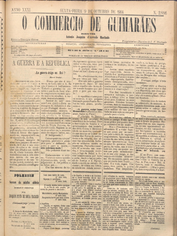 Comércio de Guimarães, nº 2886, de 13/10/1914
