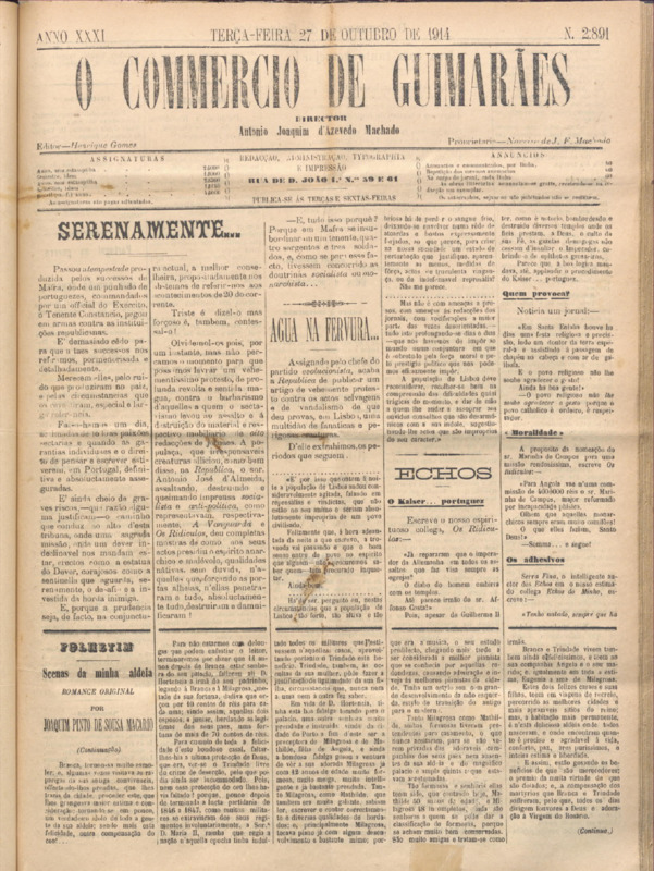 Comércio de Guimarães, nº 2890, de 27/10/1914