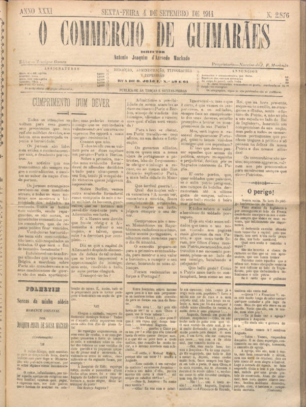 Comércio de Guimarães, nº 2875, de 04/09/1914