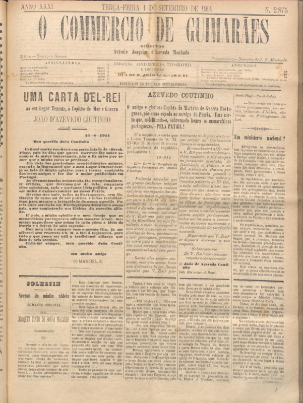 Comércio de Guimarães, nº 2874, de 01/09/1914