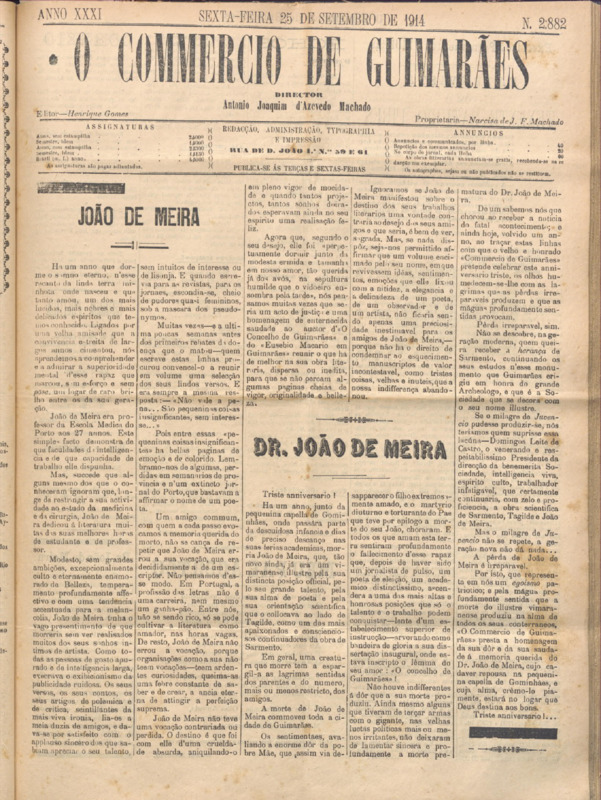 Comércio de Guimarães, nº 2881, de 25/09/1914