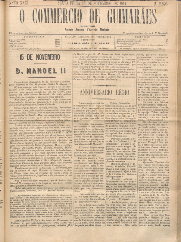 Comércio de Guimarães, nº 2895, de 13/11/1914