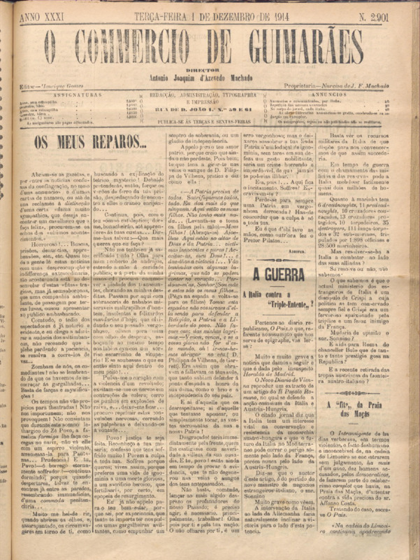 Comércio de Guimarães, nº 2900, de 01/12/1914