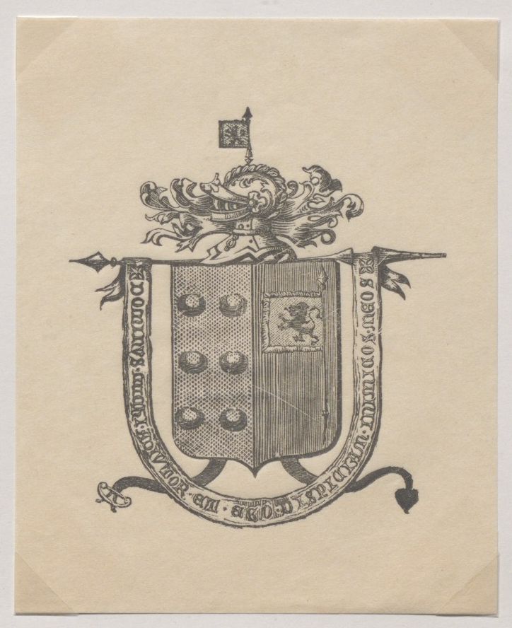 - Leitura heráldica: Escudo partido. Timbre, Elmo, Virol, Paquife.