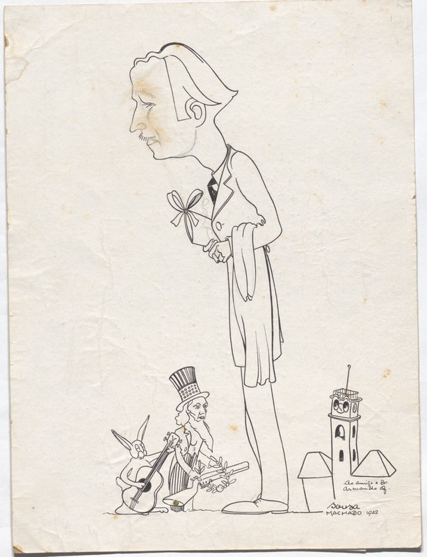 Também possui caricaturas de outros autores, tais como: Sousa Machado (B3.320) e Amarelhe (B3.322). A caricatura B3.320 contém uma dedicatória: Ao amigo e Dr. Armando of.